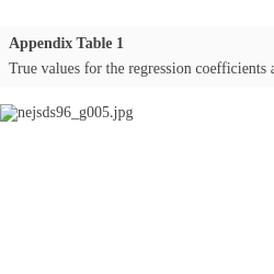 Repeated measurements taken on $i=1,\hspace{2.5pt}\dots ,14$ participants at the same set of 5 post-baseline occasions. ${Y_{i}}$ = Change from baseline in alkaline phosphatase. I represents an indicator variable. W = Week; Base = Baseline value; Reference category for the variable W was study week 4. Unstructured (UN) covariance structure was assumed. The estimates of the regression coefficients and variance / covariance matrix from fitting the MMRM model to the trial data were used as the true values. The covariate Base was generated from a distribution reasonably consistent with the trial data: a truncated N(113.14, 51.600). 500,000 data sets were generated; on average, in any given simulated data set, 1.2% of the data were missing completely at random. The regression coefficients of primary interest are ${\beta _{0}}$ and ${\beta _{4}}$; specifically, the null hypothesis ${H_{0}}:\hspace{2.5pt}{\beta _{0}}+{\beta _{4}}=0$ corresponds to no difference in the mean change from baseline at week 48 adjusting for the baseline value. This is similar to testing ${H_{0}}:\hspace{2.5pt}\mathrm{LS}\hspace{2.5pt}\mathrm{Mean}\hspace{2.5pt}\mathrm{at}\hspace{2.5pt}\mathrm{Week}\hspace{2.5pt}48=0$ (i.e., the marginal mean change from baseline equals zero).