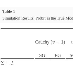 | Cauchy ($v=1$) | t ($v=3$) | t ($v=7$) | logit | probit | Cauchy | logit | probit | ||||||