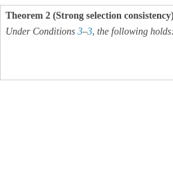 \[ PR(\boldsymbol{k},\boldsymbol{t})\stackrel{P}{\to }0\hspace{1em}\hspace{2.5pt}\textit{as}\hspace{2.5pt}n\to \infty ,\]Theorem 1 shows that, asymptotically, our posterior avoids over-fitting by not including an excessive number of unnecessary variables. However, this does not guarantee that the posterior will concentrate on the true model. To capture all significant variables, the nonzero entries in ${\beta _{0,t}}$ must have sufficiently large magnitudes. In the following theorem, we establish that our posterior achieves strong selection consistency, meaning that the posterior probability assigned to the true model t converges to 1. This requires a suitable condition on the lower bound for the magnitudes of the nonzero entries in ${\boldsymbol{\beta }_{0,t}}$. It is important to note that Theorem 1 does not require the smallest nonzero entries to be bounded away from 0. Furthermore, Theorem 2 guarantees posterior ratio consistency, which implies that the true model t will become the mode of the posterior as the sample size grows.