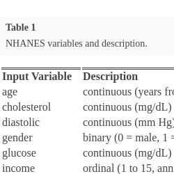 NHANES variables and description.