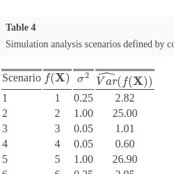 The last two terms in (3.1) are estimated from B simulated RF predictions, denoted by ${\tilde{f}_{rf}^{b}}({\mathbf{x}_{0}})$, $b=1,\dots ,B$ and taken from independent sets of forests. The first term is the intrinsic variance or the variance of the random error ${\epsilon _{i}},i=1,\dots ,n+\kappa $. The estimated prediction from the mth tree in the ${b^{th}}$ simulated RF is denoted ${\tilde{f}_{m}^{b}}({\mathbf{x}_{0}})$, $m=1,\dots ,M$, $b=1,\dots ,B$. The ${b^{th}}$ RF prediction ${\tilde{f}_{rf}^{b}}({\mathbf{x}_{0}})$ is the average of the M regression tree predictions, such that ${\tilde{f}_{rf}^{b}}({\mathbf{x}_{0}})=\frac{1}{M}{\textstyle\sum _{m=1}^{M}}{\tilde{f}_{m}^{b}}({\mathbf{x}_{0}})$.