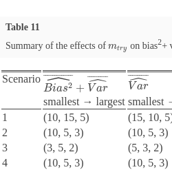 To introduce the bias-variance decomposition of the MSPE let ${\hat{f}_{rf}}({\mathbf{x}_{0}})$ denote the prediction for a new observation with covariate vector ${\mathbf{x}_{0}}$, (in ${\mathrm{\Re }^{p}}$) from the RF model. It follows that the MSPE of the RF model for a new observation ${\mathbf{x}_{0}}$ is,
