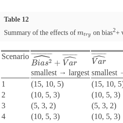 \[ \widehat{Bias}\Big[{\hat{f}_{rf}}({\mathbf{x}_{0}})\Big]=f({\mathbf{x}_{0}})-\frac{1}{B}{\sum \limits_{b=1}^{B}}{\tilde{f}_{rf}^{b}}({\mathbf{x}_{0}}).\]