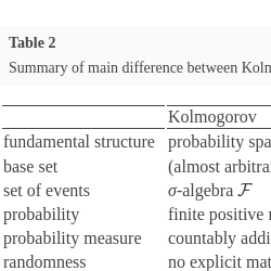 In machine learning and statistics it is often presumed that the mathematical definition of independence captures a worldly concept. As we argued in this section, this link is far from being well-defined. However, if we consider machine learning as worldly data modeling, then the natural question arises: what do we model when we leverage Kolmogorov’s statistical independence? What do we mean by independence of events? In order to circumvent these questions, we propose to look into another mathematical theory of probability. This theory was led by the idea of modeling statistical phenomena in the world.