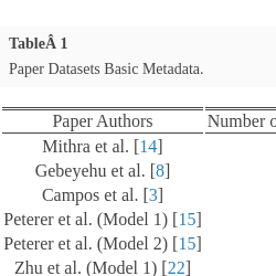 Paper Datasets Basic Metadata.