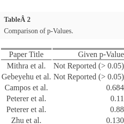 | Paper Title | Given p-Value | Obtained p-Value |