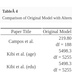 | Paper Title | Original Model | Alternative Model | Test Statistic | p-Value |