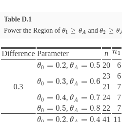 \[\begin{aligned}{}& 1-\beta ={R_{1}}+{R_{21}}+{R_{22}}|{\theta _{1}}={\theta _{A}}\hspace{2.5pt}\text{or}\hspace{2.5pt}{\theta _{2}}={\theta _{A}}.\end{aligned}\]