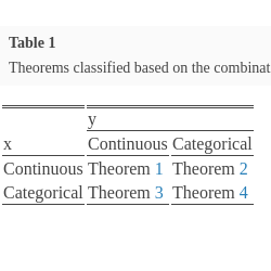 | Categorical | Theorem 3 | Theorem 4 |